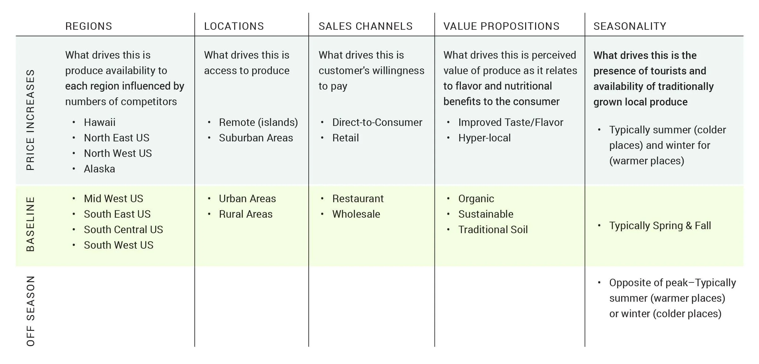 Pricing considerations by region and season