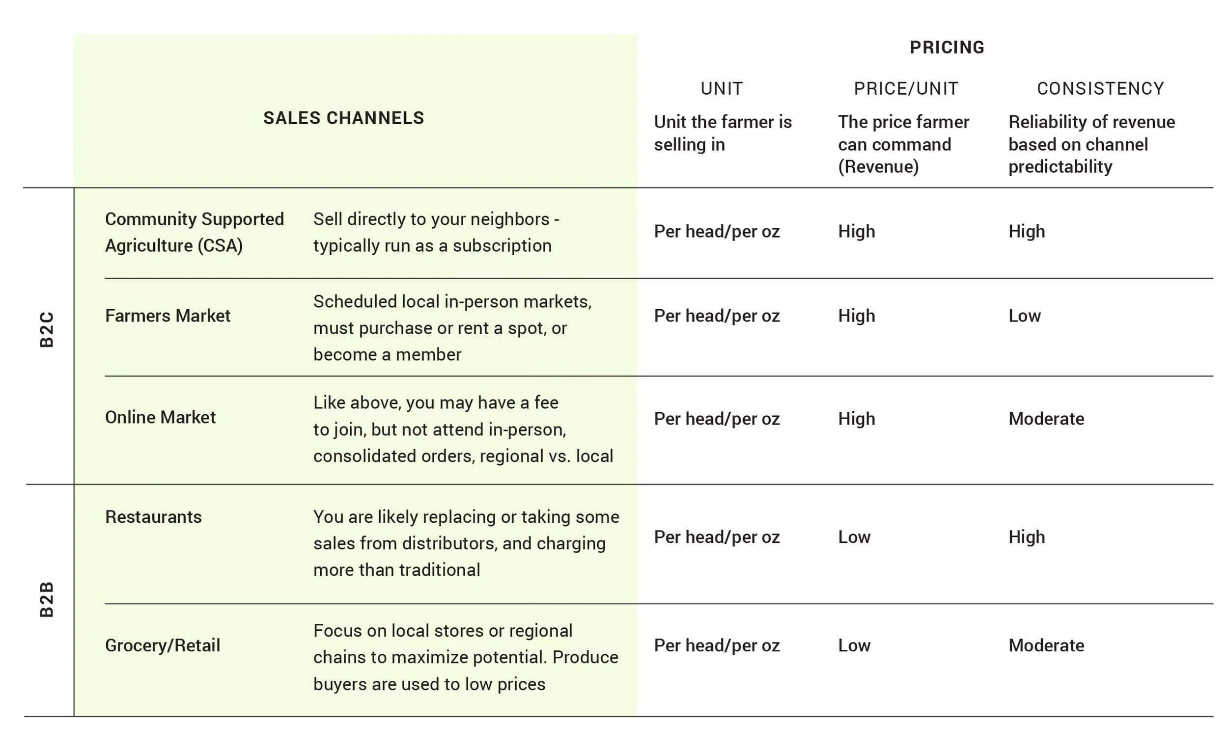 This channel allows in-person relationship building with customers who can sign up for your CSA.
